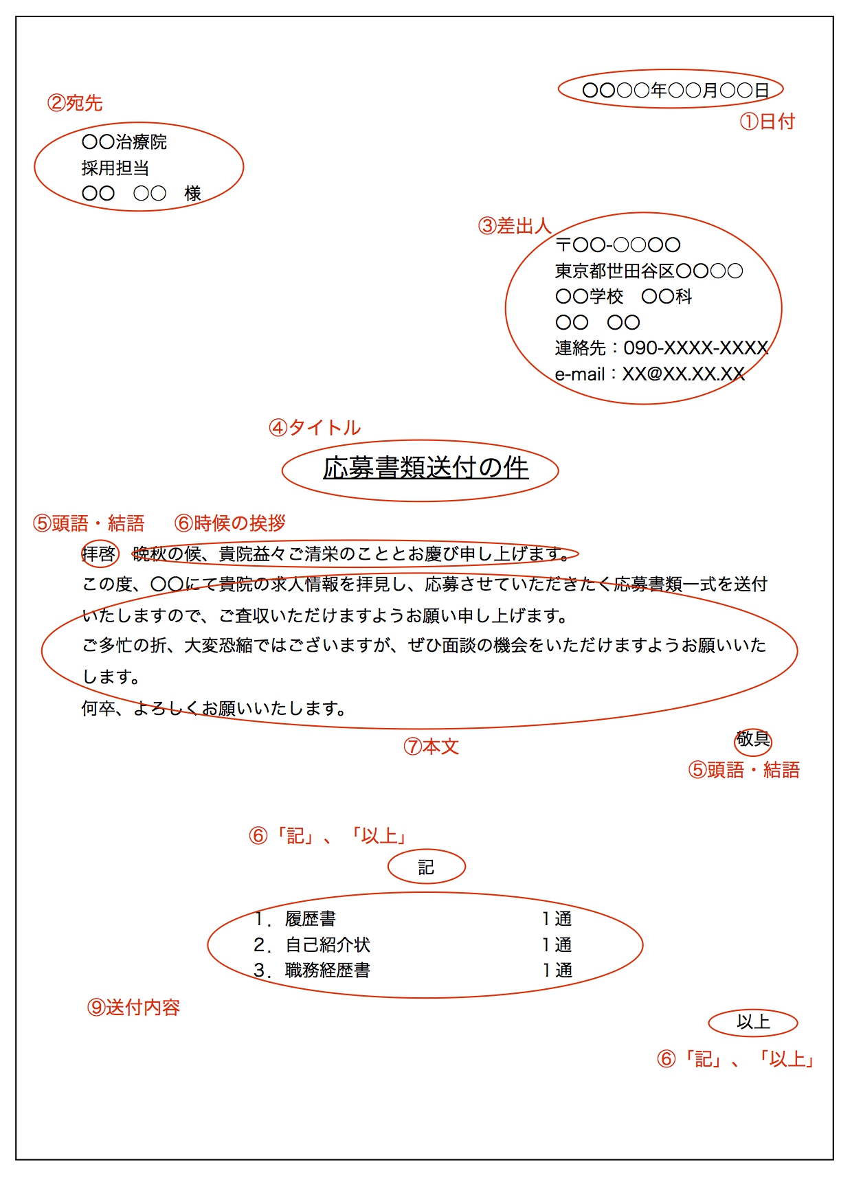 〈カバーレター(送付状、送り状)の構成内容について〉